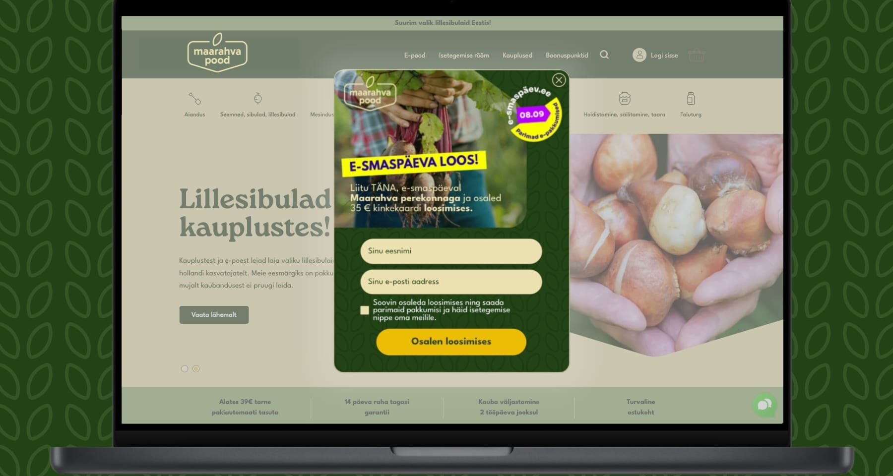 Kui sul on E-smaspäevaks eraldi bännerid, koduleht ja reklaamid, siis lisa juurde ka uudiskirjaga liitumise popup, mis on mõeldud just selleks päevaks.